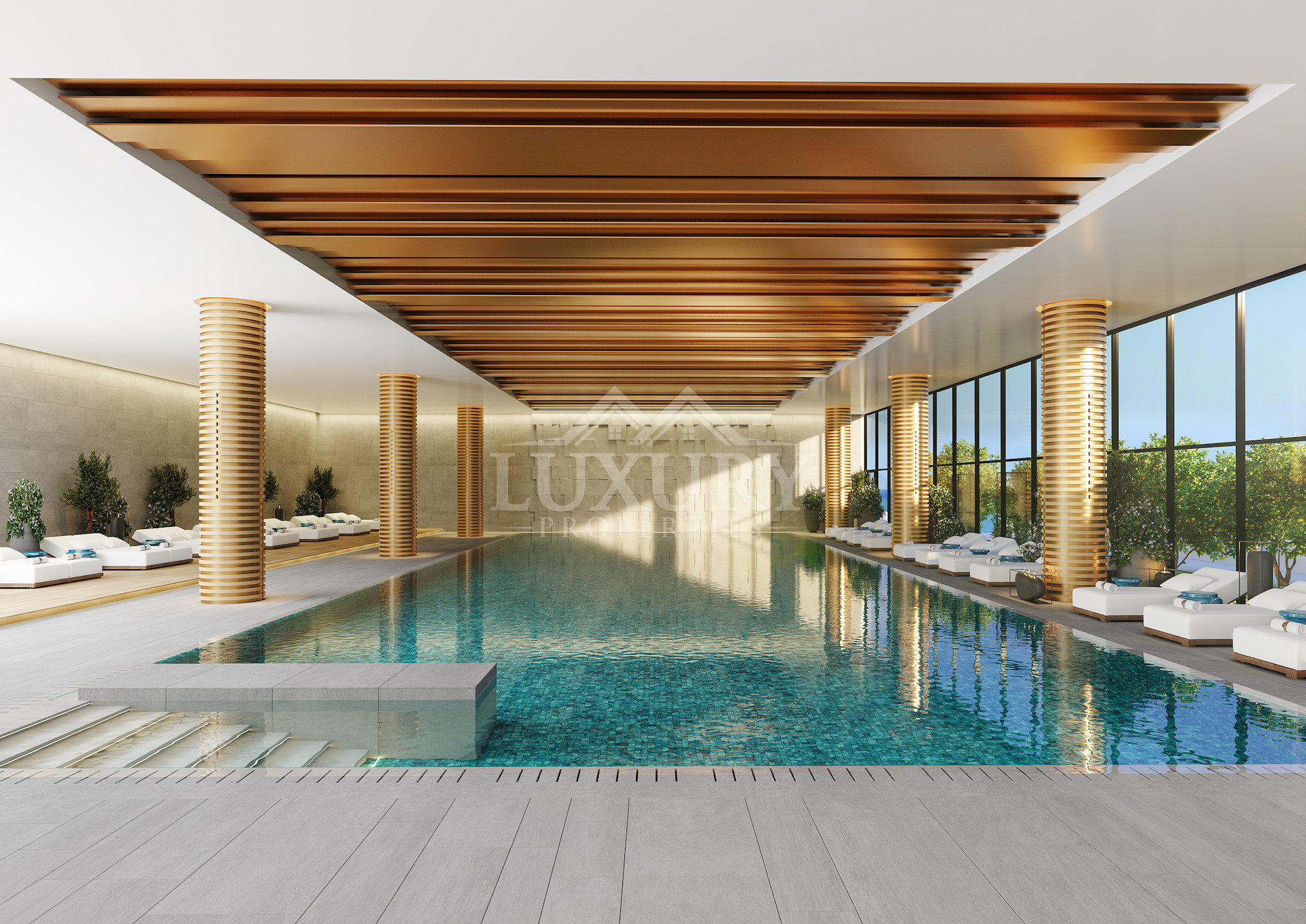 Residents benefit from an elevated sea-facing podium environment, landscaped open spaces, infinity-edge pool areas, children’s leisure facilities, a double-height sea-facing gym, luxury spa and wellness areas, indoor pool, treatment rooms, sauna and steam facilities, elegant lobby presentation, 24-hour concierge presence, underground parking, surveillance and security systems, property management support, and rental management infrastructure.