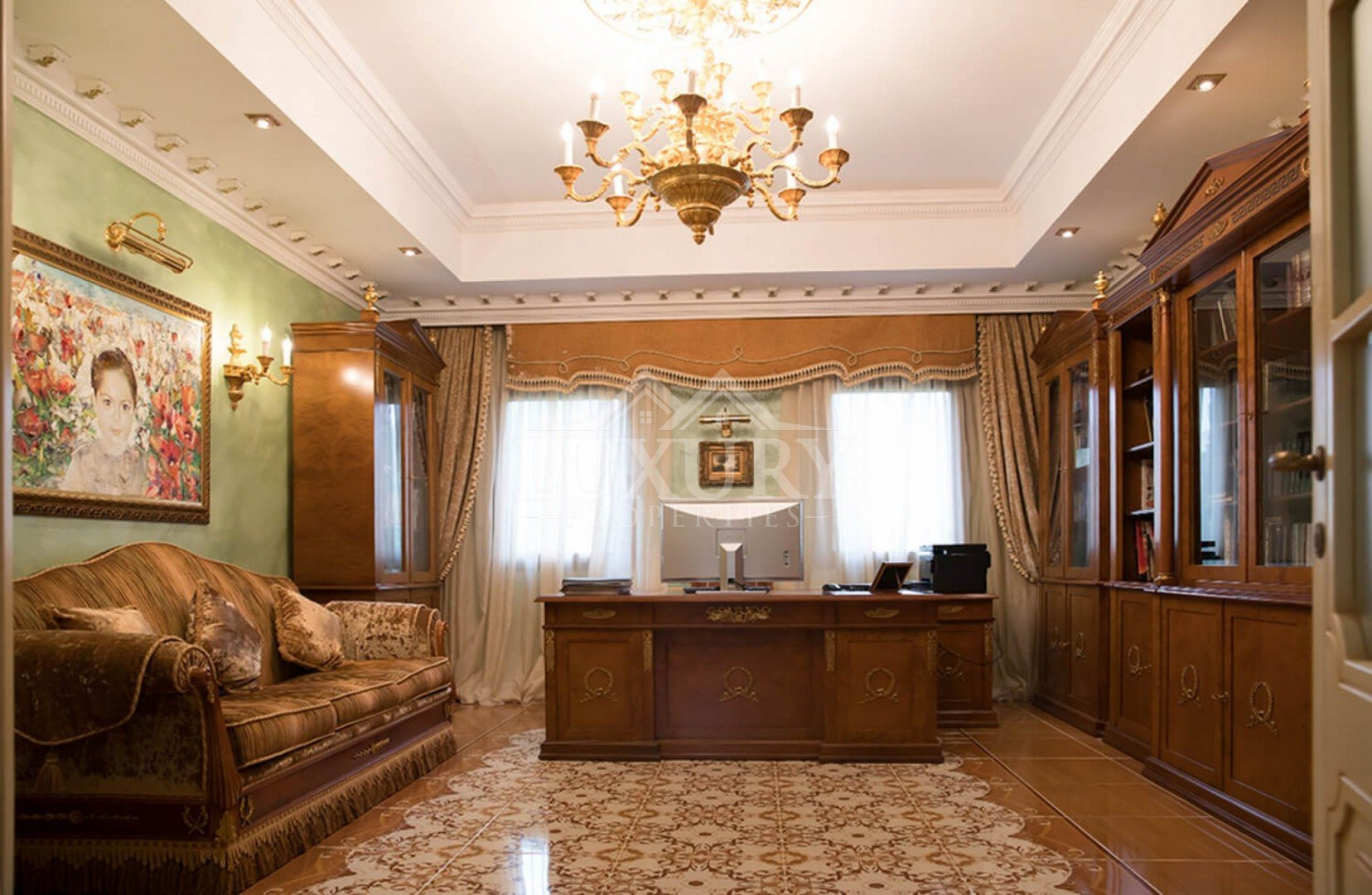 The home is furnished and decorated exclusively by high-end Italian brands and includes 6 spacious bedrooms, 6 modern bathrooms, 2 guest WCs, 2 elegant living and dining areas, 2 Italian-designed kitchens, and a generous office space. A covered garage accommodates up to 4 cars, with ample outdoor parking available.
