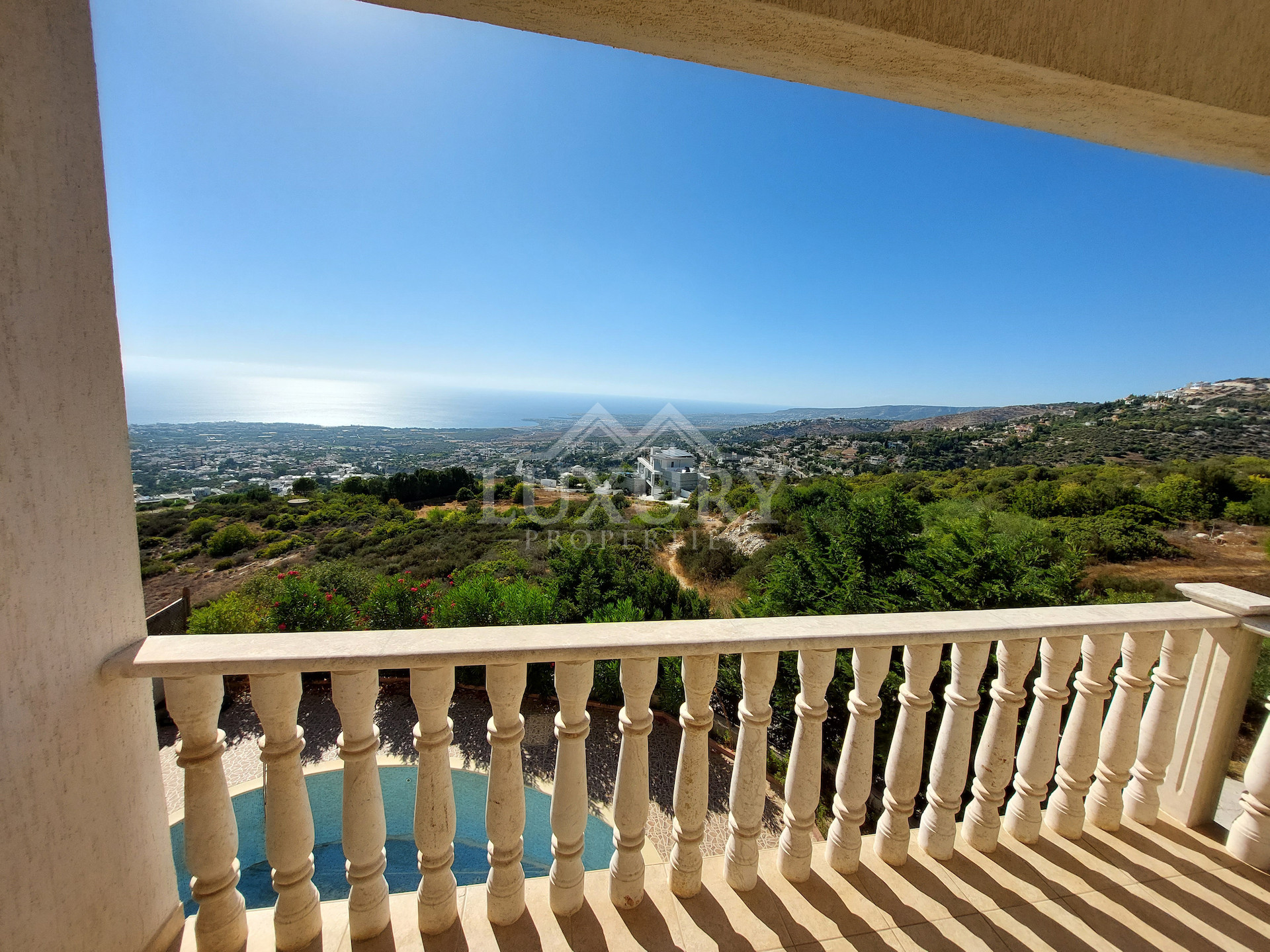 From every level of the villa, residents can enjoy uninterrupted views across Paphos town and the Mediterranean Sea. Expansive verandas, shaded terraces, and a private swimming pool are framed by mature landscaped gardens, creating the perfect setting for both relaxation and entertaining.