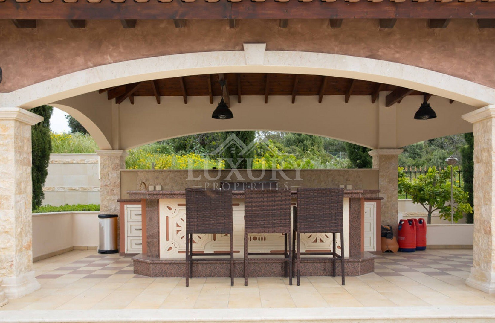Large terraces, extensive outdoor lounge and dining spaces, a fully fitted outdoor kitchen and bar with surround sound, and a 12m x 5m mosaic-tiled overflow swimming pool all contribute to a refined indoor–outdoor lifestyle in one of the most sought-after locations of Aphrodite Hills.