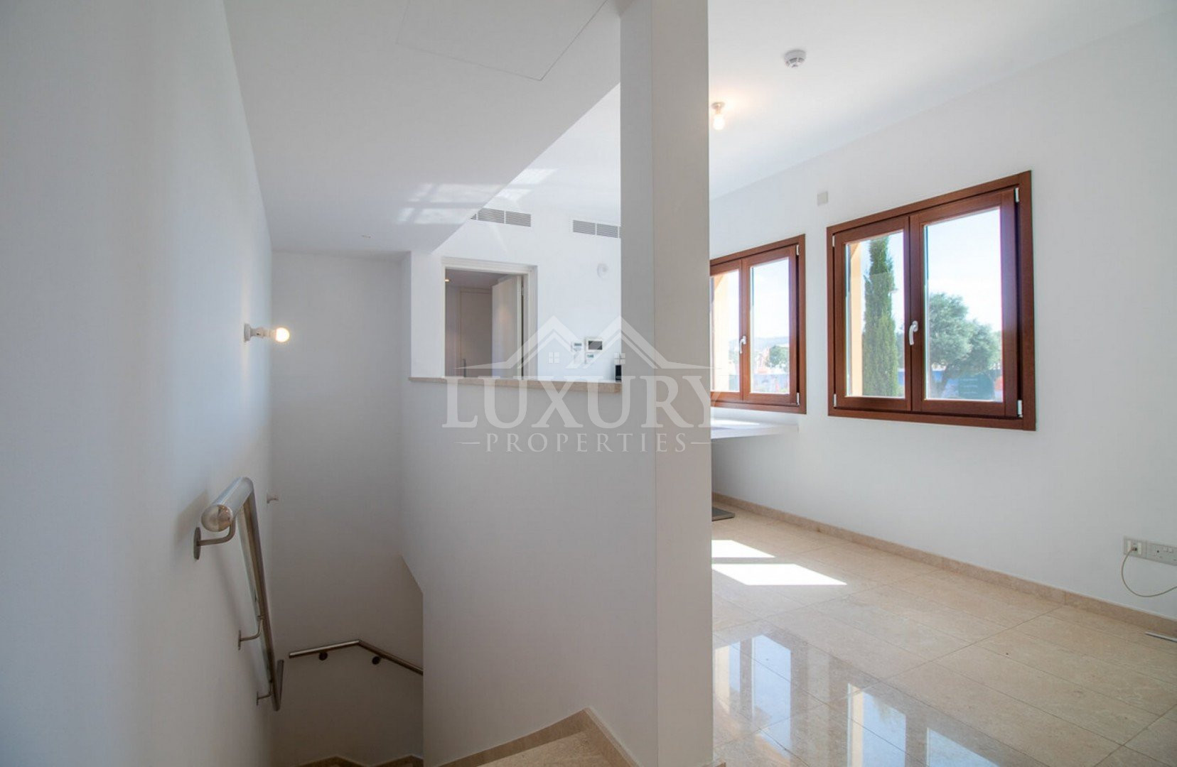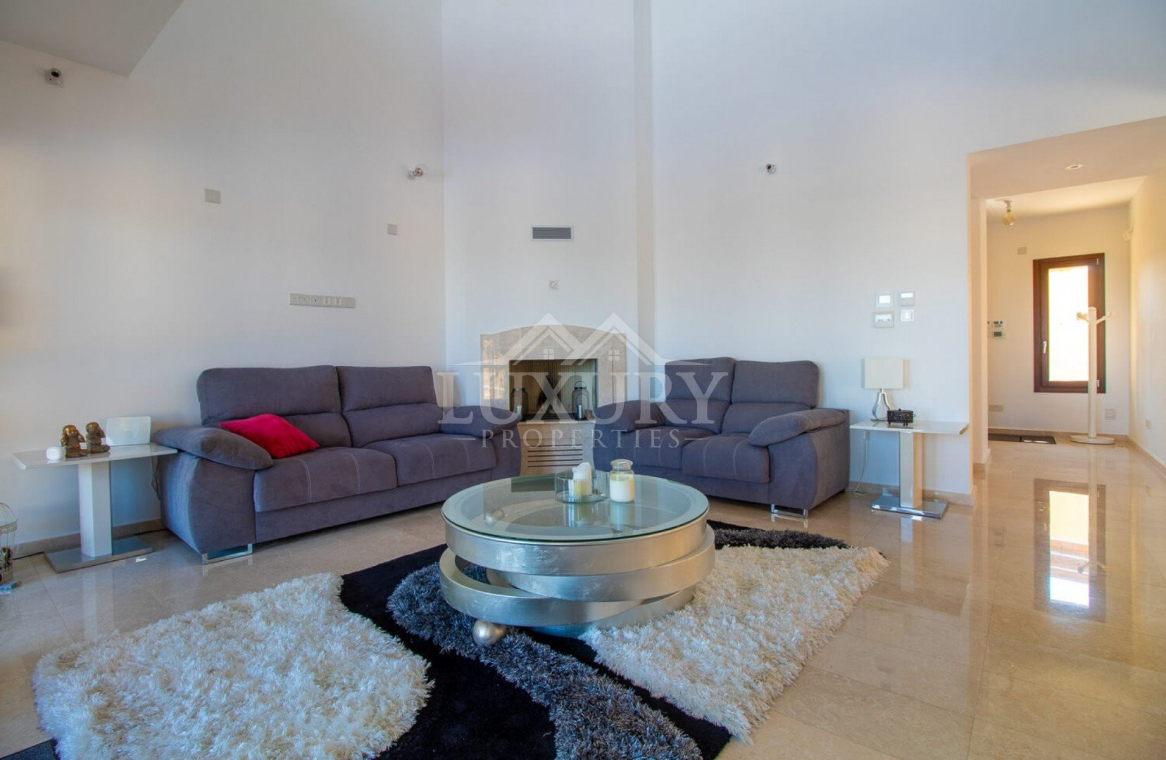 Inside, the villa is lavishly furnished with stylish décor, sumptuous fabrics, and rich color tones that create a true sense of opulence. The modern kitchen features sleek high-gloss cabinetry, premium worktops, and top-quality appliances including a large fridge-freezer, electric oven, hob, and dishwasher.
